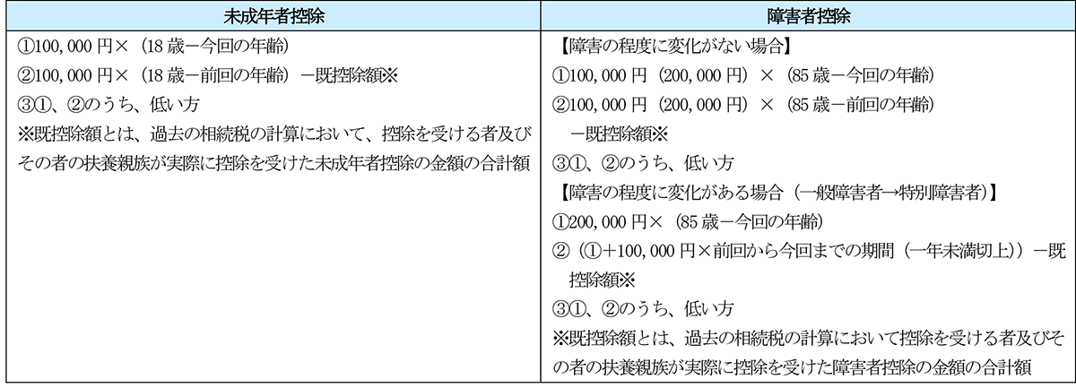 相続税の未成年者控除及び障害者控除について、重ねて適用を受ける場合(2回目以降の適用)の計算方法は下記のとおりです。