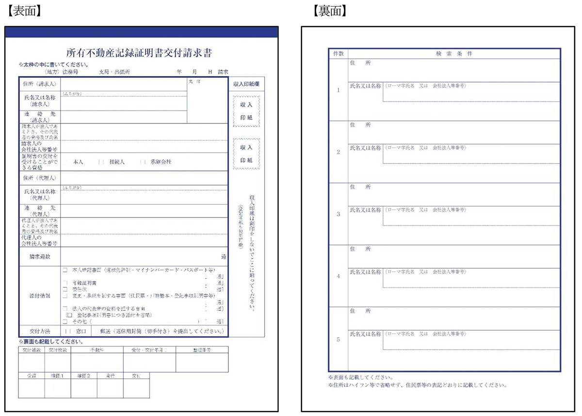 (政府広報オンラインより 法務省「所有不動産記録証明書交付請求書」様式)