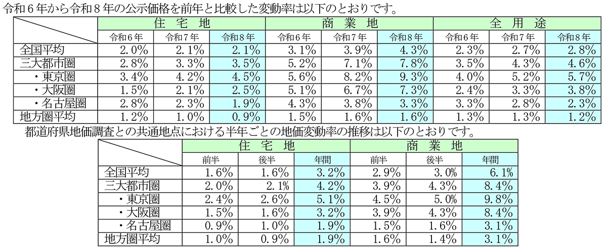 <令和8年公示価格の動向>