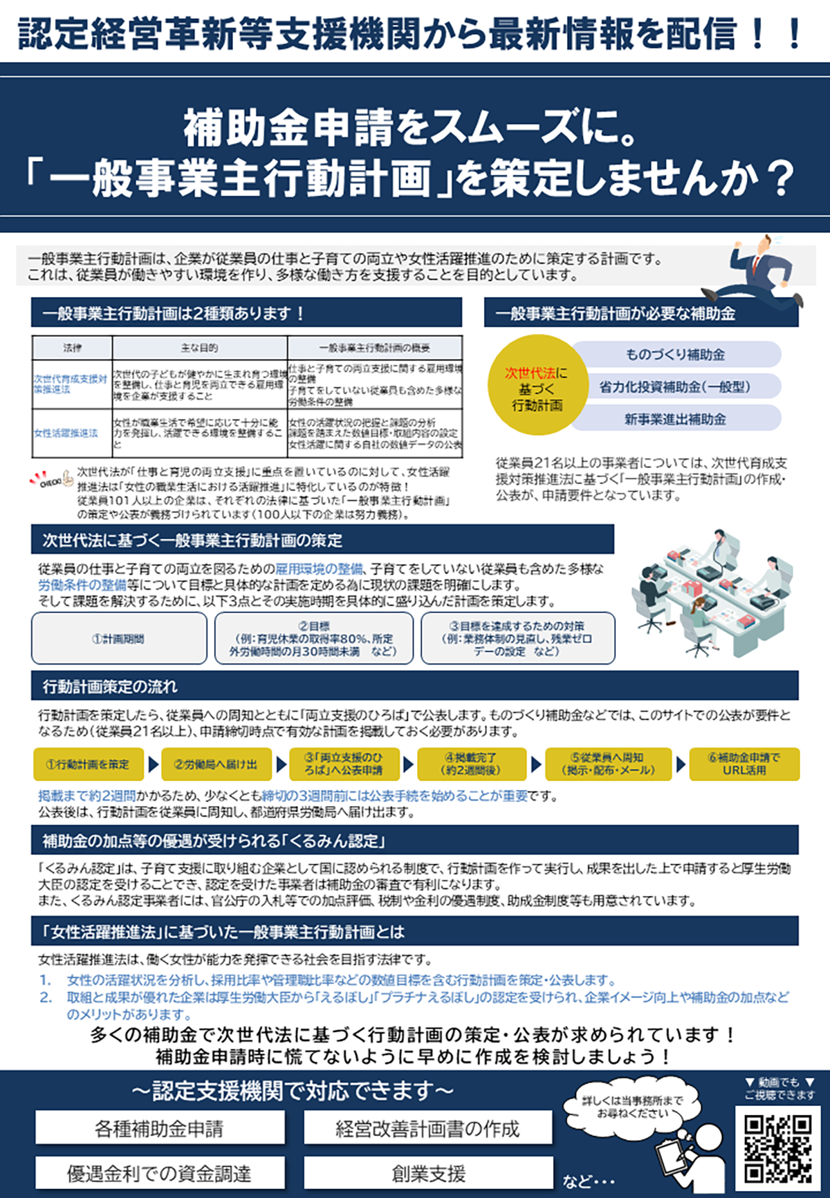 一般事業主行動計画 2026年01月06日 補助金等最新情報 一般事業主行動計画は、企業が従業員の仕事と子育ての両立や女性活躍推進のために策定する計画です。これは、従業員が働きやすい環境を作り、多様な働き方を支援することを目的としています。