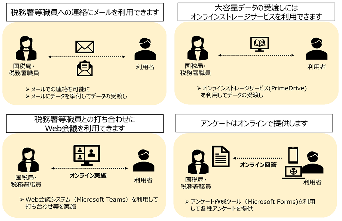 ただし、利用者がオンラインツールの利用を希望した場合であっても、国税当局の判断により、対面での税務調査等を実施する場合もあるとしています。